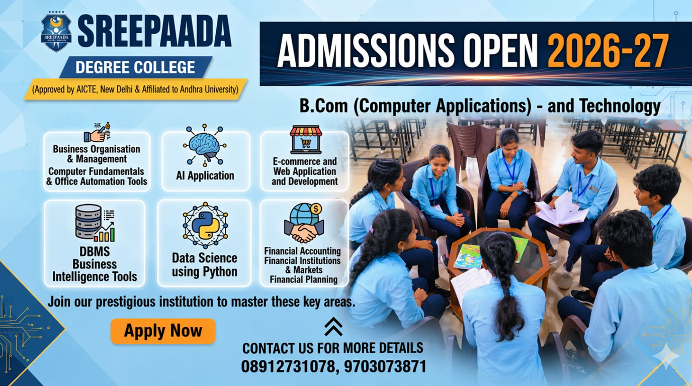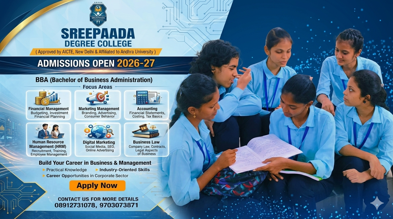 At Sreepaada Degree College, we believe that education is not merely the acquisition of a degree, but the transformation of an individual into a responsible, knowledgeable, and confident citizen of society. In today’s rapidly evolving world, higher education must go beyond textbooks. It should cultivate critical thinking, ethical values, scientific temper, leadership qualities, and social responsibility. Our institution is committed to providing an academic environment where students are encouraged to explore, question, innovate, and excel. Since its inception, Sreepaada Degree College has stood for academic excellence, discipline, and holistic development. We strive to blend strong foundational knowledge with practical exposure, ensuring that our students are well-prepared to meet global challenges while remaining rooted in moral and cultural values. Our dedicated faculty members play a pivotal role in mentoring students, nurturing their talents, and guiding them toward meaningful careers. We emphasize not only academic success but also character building, community engagement, and lifelong learning. Education has the power to uplift families and transform society. With this vision, we continue our mission of empowering young minds and shaping future leaders who will contribute positively to the nation and the world. I warmly invite students and parents to be part of the Sreepaada family and join us in this journey of knowledge, growth, and excellence.
